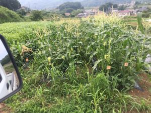 とうもろこしの間に育てている枝豆が、