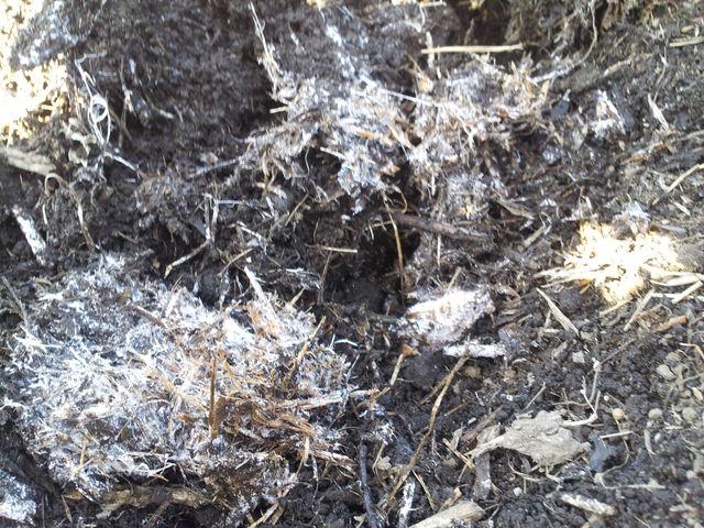 白いのは糸状菌。キノコ菌など生き物がたくさんいるのが炭素循環農法の土壌です。