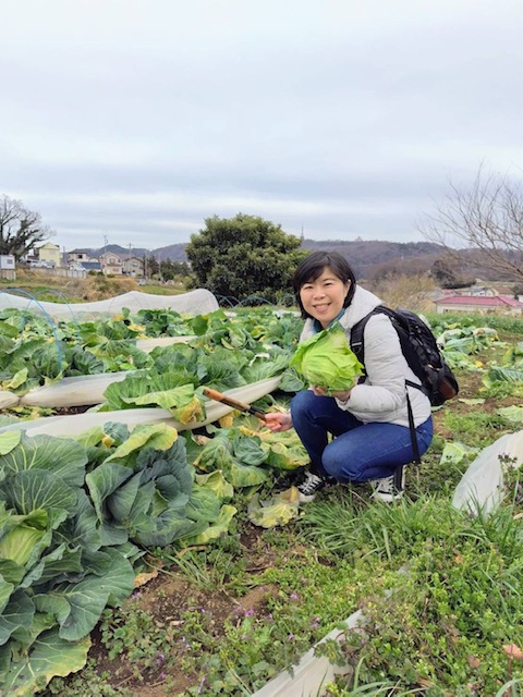 2月の収穫体験のお客様。美味しそうなキャベツがとれました!