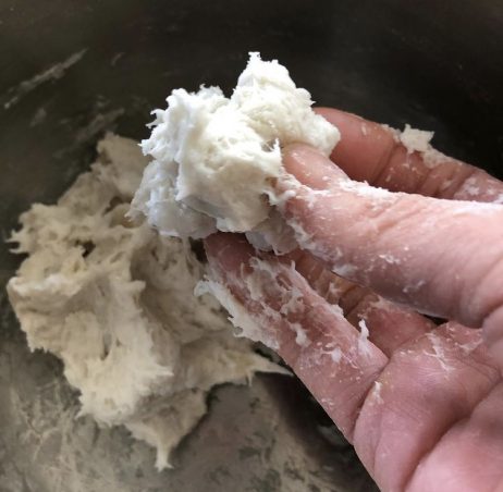 ③硬さをみながら、粉を足しながら練り混ぜる(ひとまとりになる位)