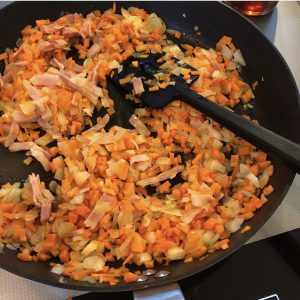 1️⃣にんじん2️⃣玉ねぎは荒めのみじん切りに、3️⃣ベーコンは千切りにする