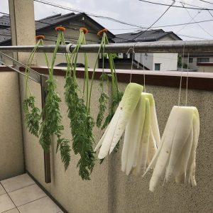 たんじゅん野菜の大根を天日に干して、日持ちする保存食にします。