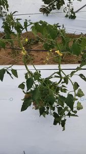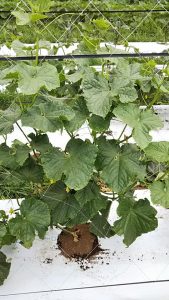 誘引の方法は色々ありますが、いかすではアーチ状の支柱にキュウリ用ネットを這わせ、