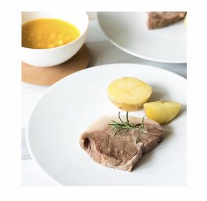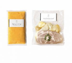 ブランドポークのローストステーキとたんじゅん野菜の食べるスープのセット。