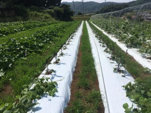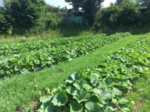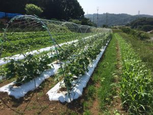 現在の果菜類の様子です いかすニュース2019.6.7(金) 現在の果菜類の様子です。 通路には、マルチムギや、エンバクが生えていて、多様性管理です。 畑が綺麗な季節になりました。 風の吹いてくる方向には、ソルゴー障壁を設定しています。
