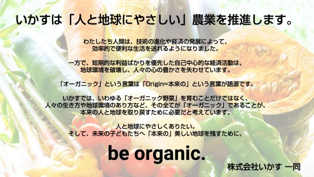 私たち“いかす”は、これからも「人と地球にやさしい農業」を推進していきます。