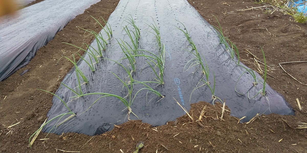 午後過ぎたぐらいに少し天候も落ち着いてきたので、畑で玉ねぎ苗の定植を行いました。