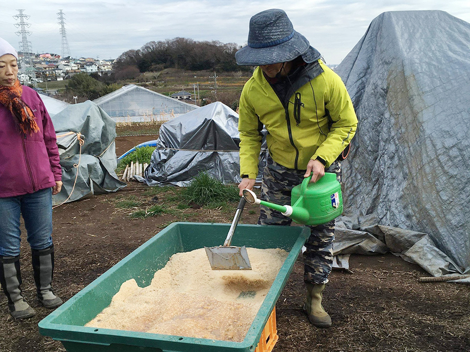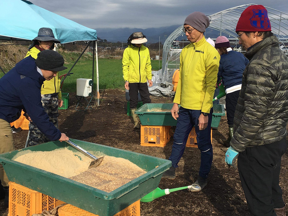 先週の講義で学んだEMぼかし肥料を実際に作ってみました。