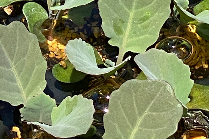 水から上げて2時間経つと根から苗全体に水が行き渡ります。