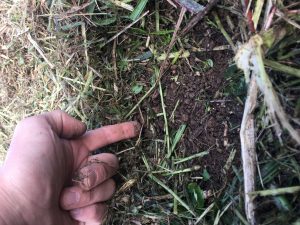 表層で発酵させていたソルゴーを作土15㎝全体に広げていきます。
