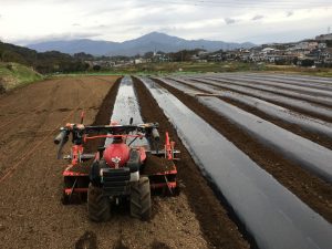 11月に入り、もう一度耕起して、玉ねぎ用の黒マルチをはっておきました。
